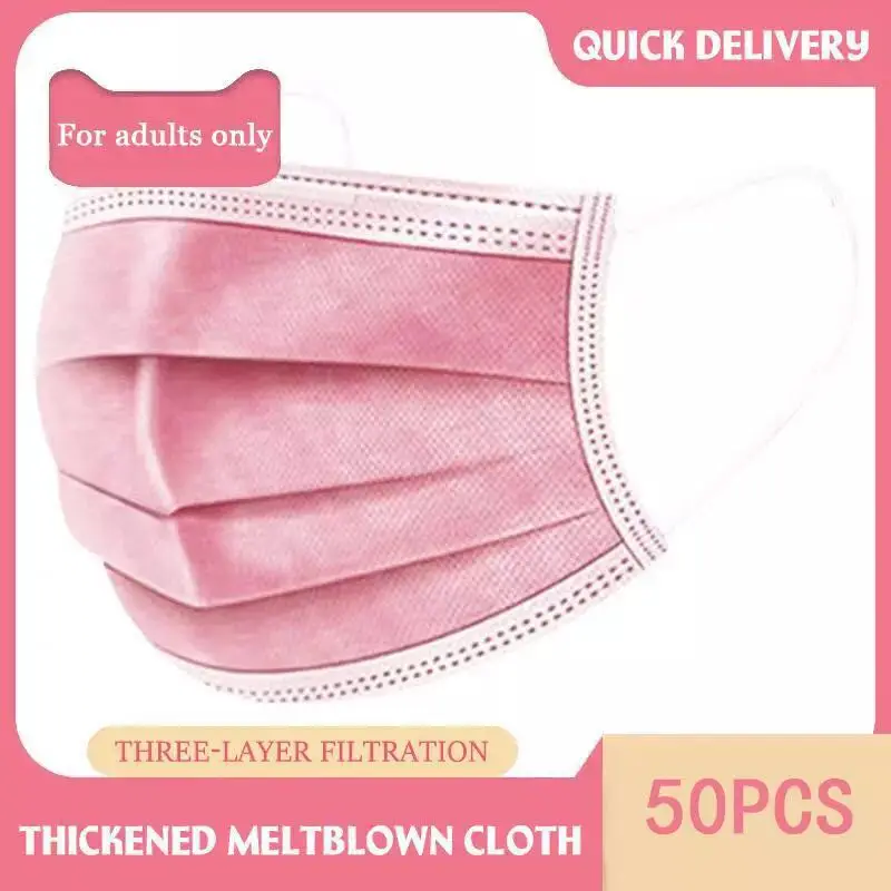 10/50/100 Pcs Pink Disposable Non-woven 3-layer Face Mask Breathable Mask With Elastic Earband Breathable Adult Mouth Mask