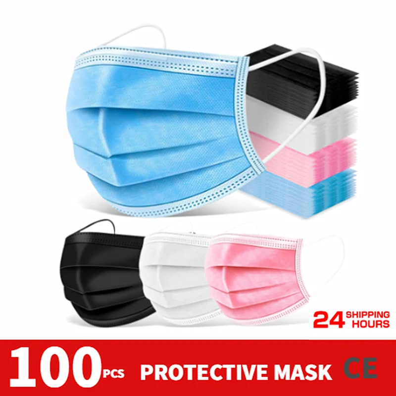 10/50/100 Pcs Pink Disposable Non-woven 3-layer Medic Face Mask Breathable Mask With Elastic Earband Quality Adult Mouth Mask