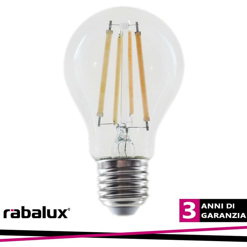 Lampadina E27 Filamento CARATTERISTICHE DEL PRODOTTO:categoria di prodotto=Lampadina:Temperatura del colore=bianco caldo:Flusso luminoso della sorgente luminosa (lm)=1050:Specifiche della sorgente luminosa=8 W:Tecnologia LED=S:Protezione IP=IP20:Colore della lampada=trasparente:Materiale della lampada=vetro:Materiale del paralume=vetro:Durata della sorgente luminosa (h)=20000:Classe energetica della sorgente luminosa=E:Garanzia (anni)=3:Angolo di illuminazione=300:Consumo energetico ponderato (kwh/1000 Ah)=8.0:PRESA=E27:Tensione applicata=230 V, 50 Hz:Verticale (mm)=108.0:Diametro=60.0:Misura unica della scatola X (cm)=6.0:Misura unica della scatola Y (cm)=10.8:Misura unica della scatola Z (cm)=6.0:Peso netto (kg)=0,03:Peso lordo=0,045:Temperatura del colore (K)=2700:La forma della sorgente luminosa=A60:Raggio d'azione ideale=-20°C 40°
