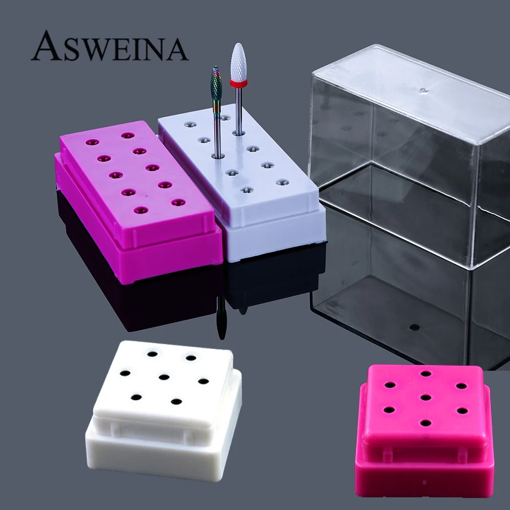 10/7 Slots Nail Drill Bit Holder Clear Storage Box For Electric Rotary Files Display Nail Accessorie Tools