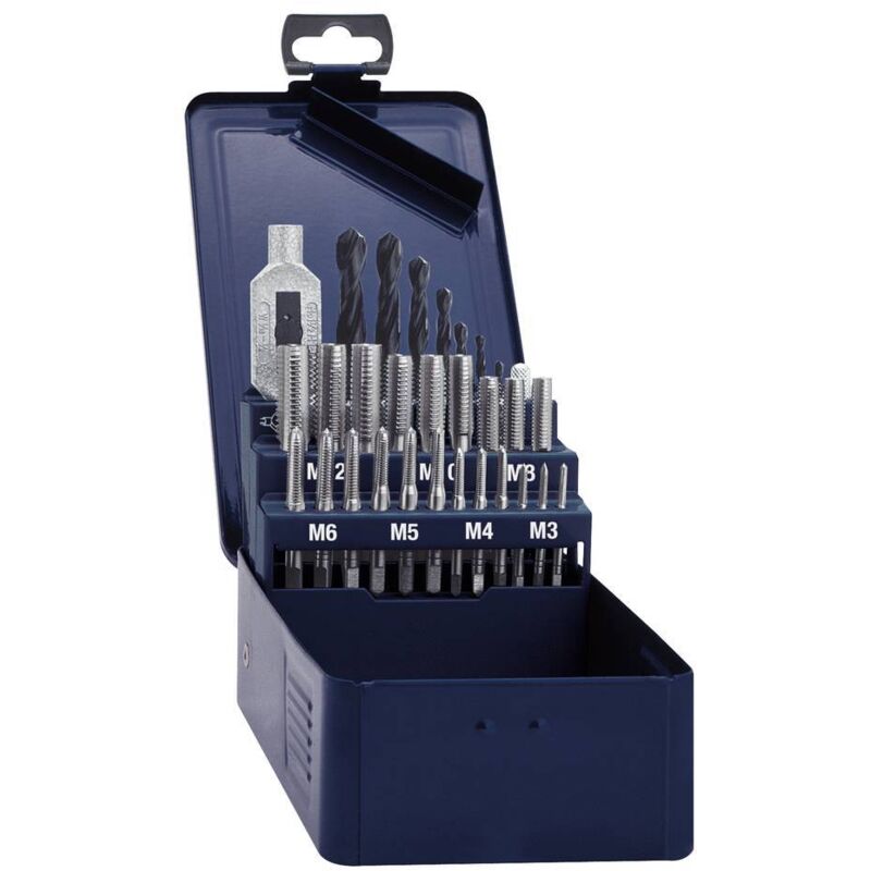 Dettagli tecnici Materiale punte HSS Tipo prodotto KIT maschi a mano Incluso nella consegna Maschio per filettature a mano (taglierina preliminare, centrale e finale) M3/M4/ M5/M6/M8/ M10/M12 Giramaschio 1 1/2 Fresa a corona: Ø 2,5/3,3/4,2/5/6,8/8,5/10,2 mm. Testo tradotto automaticamente. Requisiti di sistema null