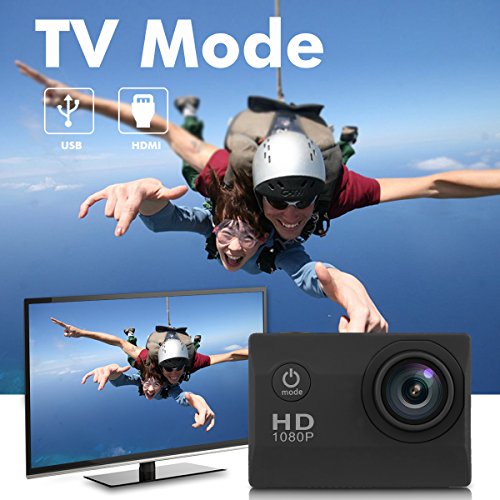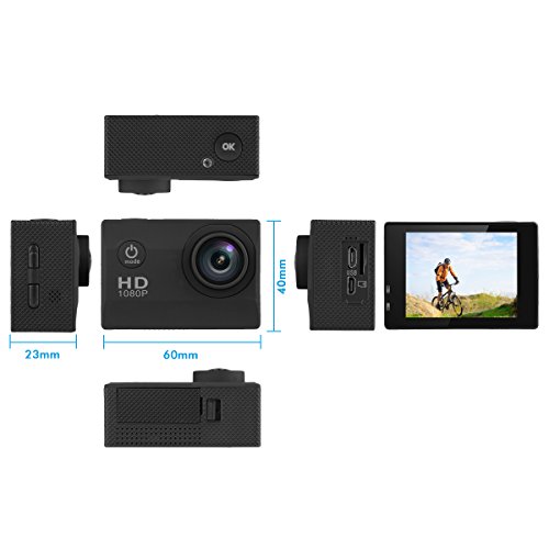 1.5"1080P 30FPS 12MP HD Action Cam IP30 Impermeabile, Action Camera Sport Lente Grandangolo 170°, 1100mA 70 minuti (Nero)