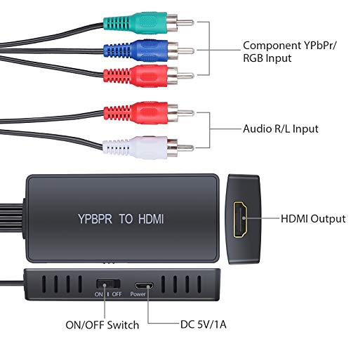 1080P YPbPr a HDMI Converter Component to HDMI Adattatore 5RCA RGB YPbPr a HDMI Converter Upscaler con 3ft Component Video Cable per DVD DVR NGC 360 HDTV Monitor Proiettore