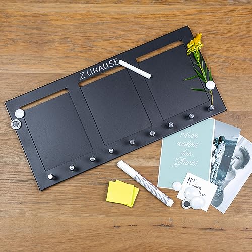 HMF 10850-02 Armadietto Chiave 3 Cornici Foto con 9 Ganci per Portachiavi, 44 x 20 x 4,3 cm, Nero