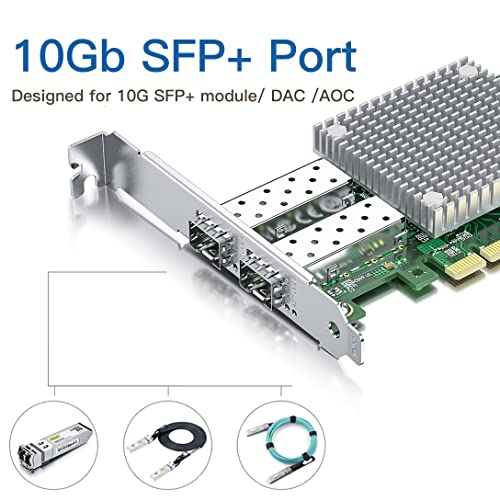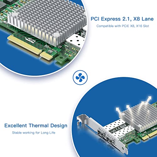 ✅SFP+ PCI-E NIC: 10Gb Dual SFP+ Ports, applicabile al modulo 10G SFP+/ DAC /AOC. PCI Express 2.0. 5,0 G T/s x 8 corsie, compatibile con slot PCIE X8, X16.