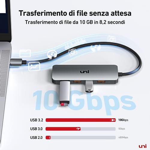 [Garanzia di 18 mesi] uni offre una garanzia di 18 mesi e un servizio clienti 24 ore su 24 per questo hub da USB C a USB HUB 10Gbps. Se avete domande, non esitate a contattar