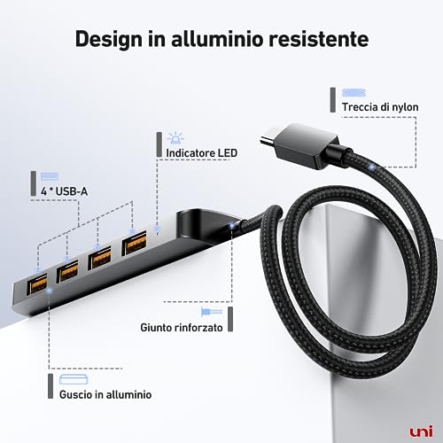 Hub da USB C a USB 10Gbps, hub uni USB C con 4 porte USB A 3.2, adattatore multiporta in alluminio da tipo C a USB, per iphone MacBook Pro/Air 2023, iPad Pro, iMac, Surface Pro, Dell, ecc.