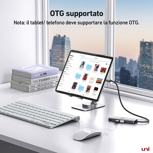 [Supporto OTG] uni HUB USB C to USB A permette a tablet o smartphone di agire come host, consentendo la connessione ad altri dispositivi USB come fotocamere digitali, mouse o tastiere, rendendo più facile l'espansione.