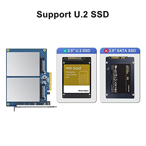 Mount two 2.5 inch U.2 NVMe SSD or 2.5 inch SATA SSD into your desktop computer or server to improve your system performance and expand overall internal storage.
