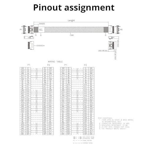 SlimSAS SFF-8654 to SFF-8654 cable, 8i configurations, supports data rates up to 24Gbps, 85 Ohm impedance, 32AWG, (11#) straight types cable plug.