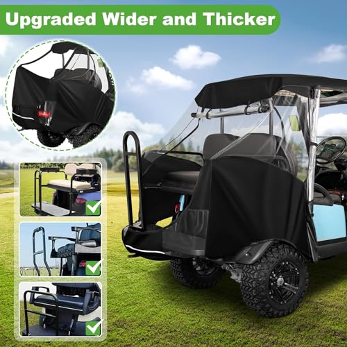 Protezione completa in diverse stagioni: 10L0L Carrello da golf dal design unico, con 4 scomparti per passeggeri, custodia a 4 lati offre tutta la protezione contro vento, pioggia, sole o altre influenze atmosferiche, per mantenerti al caldo in inverno, fresco in estate (nota: sul retro si adatta solo a bambini di 4-5 anni, per adulti la porta posteriore non può essere chiusa)