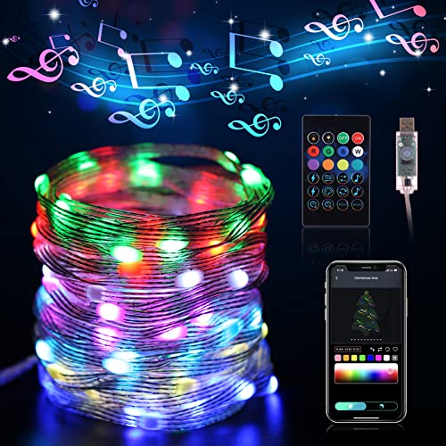 10M/33ft Catena luminosa LED per esterni/interni, Stringa di luci RGB intelligenti impermeabili con luce colore multiple, DIY, induzione vocale e musica, decorazione per feste, Halloween, Natale