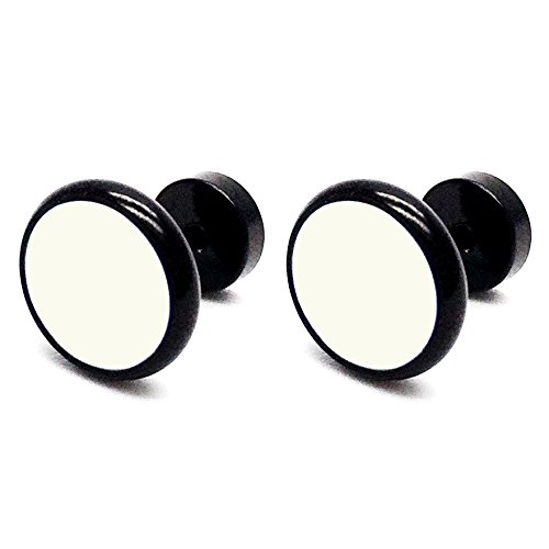 10MM Nero Bianco Cerchio Orecchini Bianco da Uomo Donna, Finto Dilatatore Fake Plug, Acciaio Inossidabile, 1 Paio