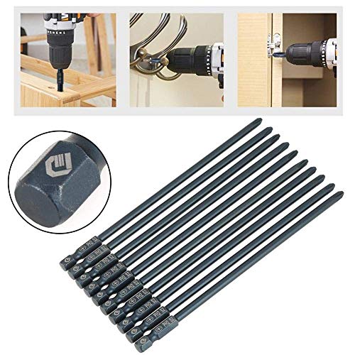 10pcs 150mm Lungo Phillips Bits Cacciavite Set S2 Acciaio 1/4 pollici Hex Shank Croce Testa PH2 Cacciavite Magnetico Bit Set Strumento