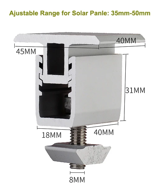 10pcs aluminum adjustable mid clamp for 35,40,50,55mm solar panel mounted of roof solar mounting bracket- system - accessories