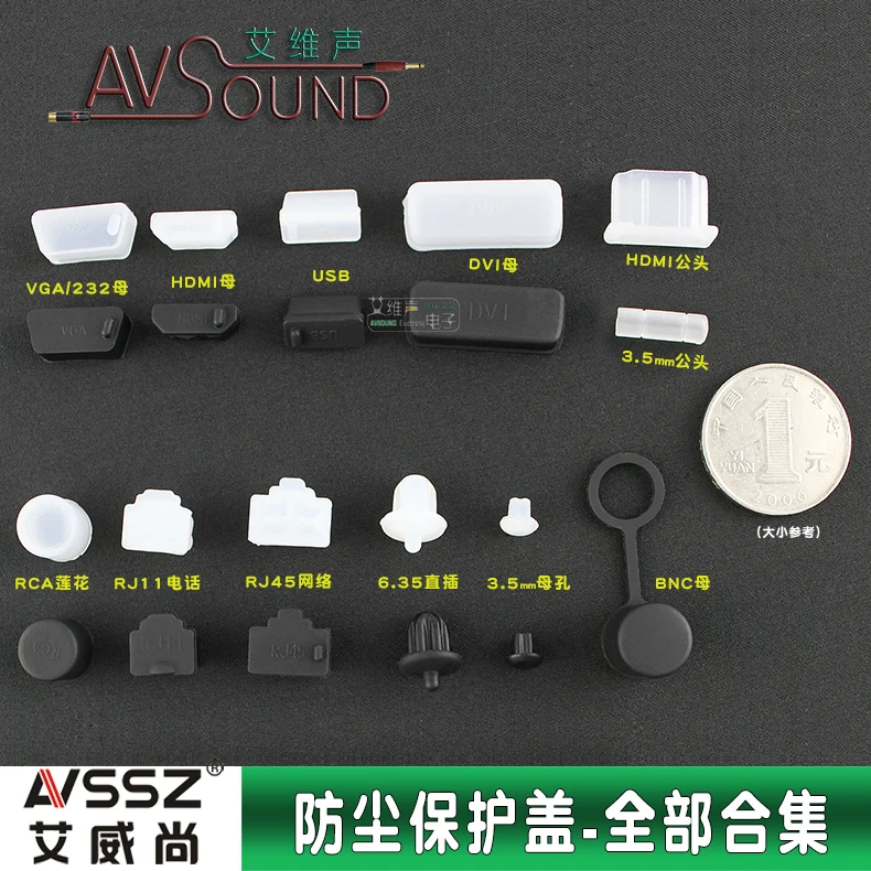 10pcs Audio Video Network data dust plug waterproof protective cover soft silicone HDMI VGA BNC USB RJ45 RJ11 Jack 3.5/6.35 RCA
