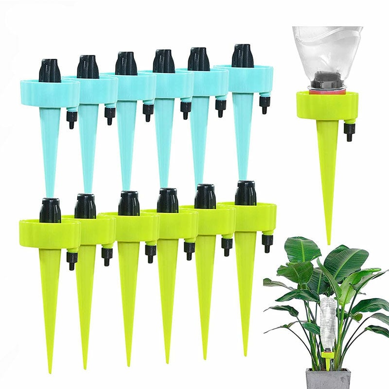 Self Watering Spikes, Automatic Plant Watering Devices, Adjustable Drip Irrigation System with Slow Release Control Valve Switch, Suitable for Outdoor Indoor Plants 【Adjustable Control Valve】- The water flow rate can be adjusted by adjusting the control valve. Our automatic plant watering device can control the speed, and the continuous dripping time is 5-20 days. 【New Upgrade】- Compared to other normal products, our upgraded watering spikes do not need to poke holes in the bottom of the bottle when in use. The most important thing is that it will not stop watering due to the influence of water pressure. 【Eco-Friendly and Easy to Use】- Our plant watering spikes are made of high quality ABS material, non-toxic, odorless. Without any complicated installation, you just insert these automatic watering devices into the soil. 【Suitable for 90% of Bottles】- The self watering spike is suitable for 90% of the bottles, so you don't have to waste valuable time looking for the suitable bottle.