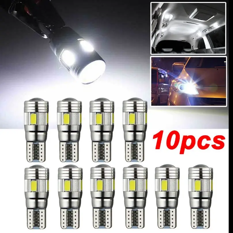 10PCS New T10 LED Bulbs 5W LED Lamp White Car Parking Light Side Door Bulb Instrument Lamp Auto License Plate Lights