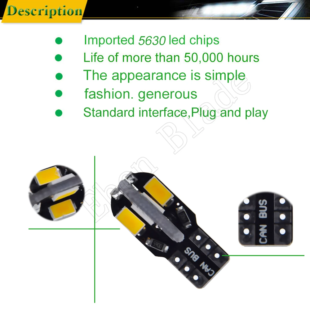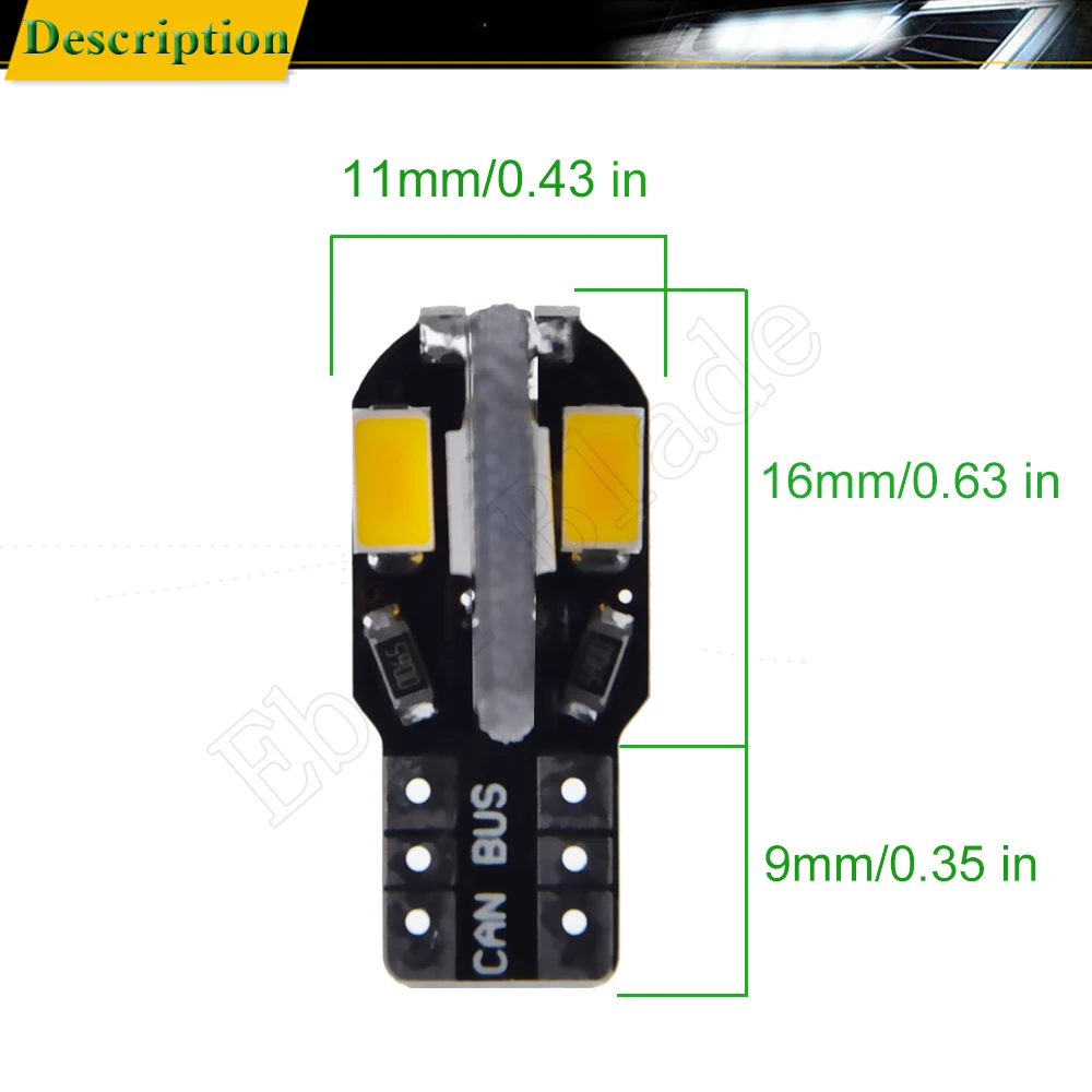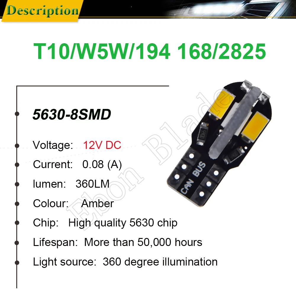 10Pcs T10 Led Canbus W5W Led Bulb 168 194 Car Interior Lights Signal Lamp Dome Reading License Plate Light Auto 12V Amber Orange