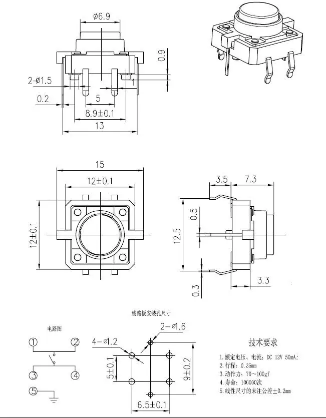 10PCS Colourful Tactile Push Button Switch Momentary 12*12*7.3MM Micro switch button green white blue yellow red with light