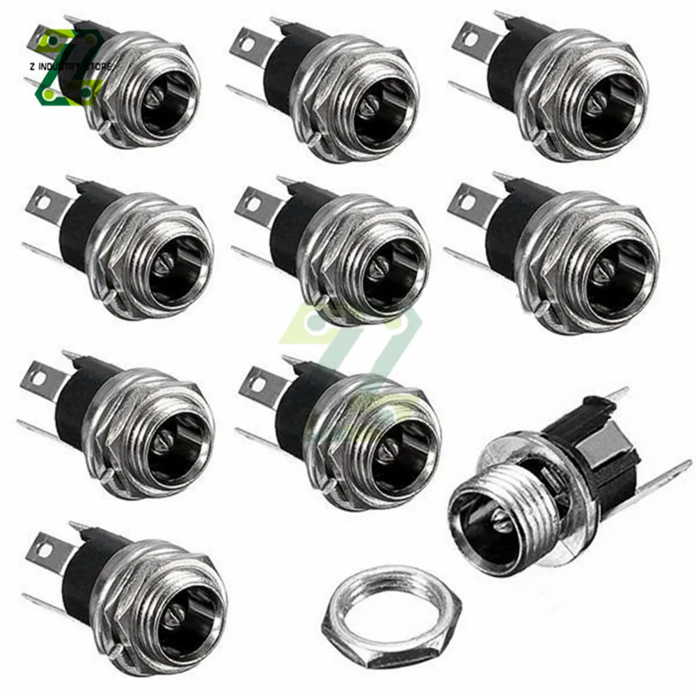 10PCS DC-025M 5.5mm x 2.1mm DC Charging Socket Connectors With Nut Socket Female Panel Mount Connector
