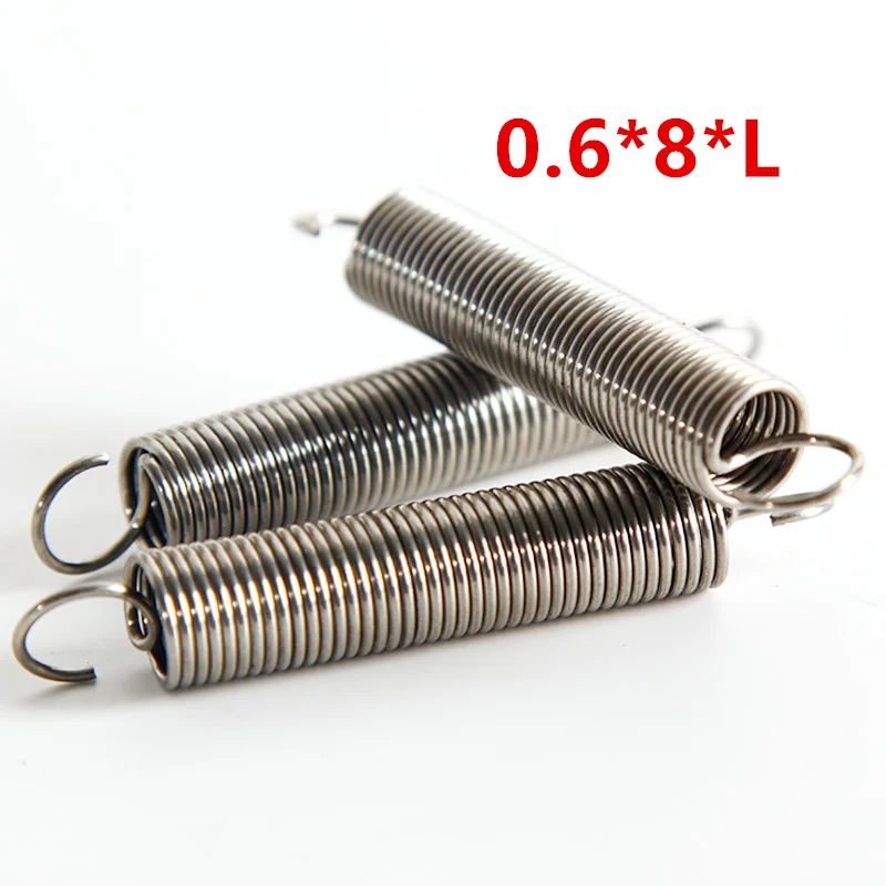 10pcs Dual Hook Small Tension Spring 304 Stainless steel Extension spring wire dia 0.6mm Outer dia 8mm Length 15-50mm