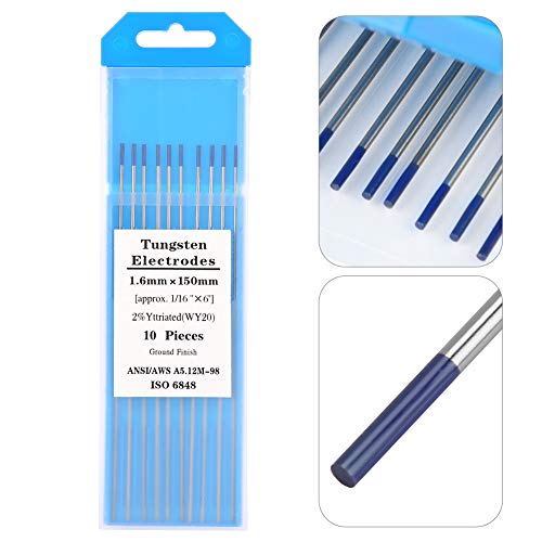 10Pcs Elettrodi di Tungsteno TIG WY20 Elettrodo di Tungsteno 2.0% di Ittrio a Punta Blu per Saldatura TIG 1.6mm × 150mm
