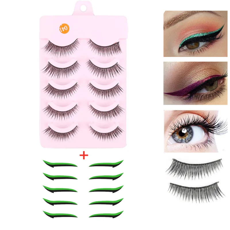 New 10PCS False Eyelashes And Eyelid Line Stick Eyeliner Stickers Natural Waterproof Reusable Lazy Useful Cat Eye Cosmetic