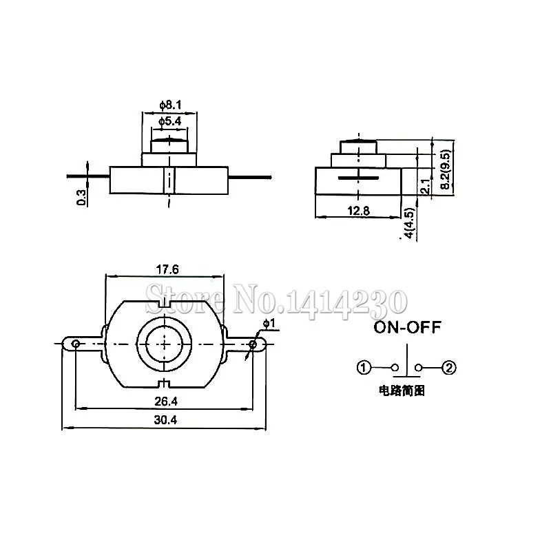10PCS Flashlight Button Switch 1813-DF ON-OF18*13mm Feet Parallel Yellow 2 pins Central Button