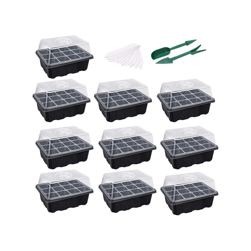 10pcs 12 Fori Piantare Semi di Avviamento Kit Vassoio Scatola di Germinazione delle Piante con la Cupola e la Base del Giardino Vivaio Piantina Crescere vassoi di Attrezzi Per Il GiardinaggioCaratteristica:Coperchio trasparente, si può facilmente osservare il processo di crescita delle piante.Fori di ventilazione in grado di regolare la temperatura e l'umidità del vivaio ambiente.Ci sono fori di drenaggio sul fondo di ogni unità per un corretto drenaggio per ridurre radice supersaturation.Può essere riutilizzato, risparmio energetico e tutela ambientale.Il 12-griglia vassoio piantina è conveniente per la gestione centralizzata quando semina e facile da usare.Specifica:Materiale: PlasticaFormato: 190x140x11 0 millimetri/7.48x5.51x4.33inColore: Nero, VerdeNota:A causa del monitor differente e la luce di effetto, il colore reale del prodotto potrebbe essere leggermente diverso dal colore mostrato sulle immagini. Grazie!Si prega di consentire 1-3 centimetri di misurazione deviazione
