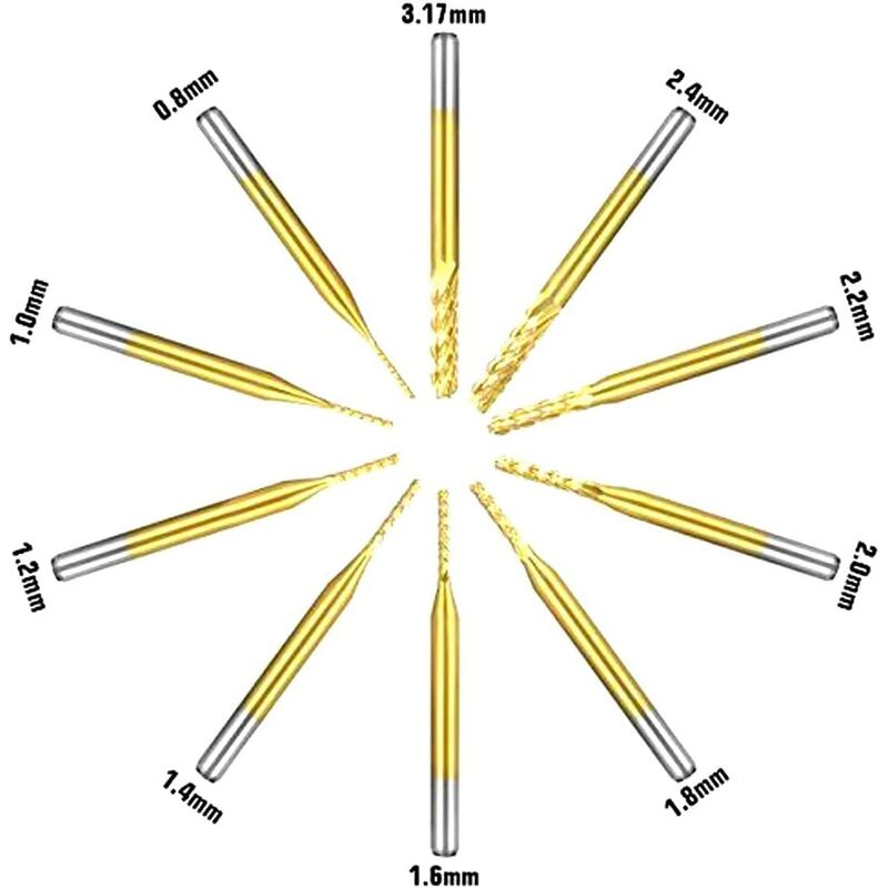 Lunghezza totale: 37mm (Si prega di ricevere il codice coupon sulla pagina del prodotto al momento del pagamento per ottenere un prezzo migliore.) Diametro tagliente: 0,8-3,175 mm (0,8/1,0/1,2/1,4/1,6/1,8/2,0/2,2/2,4/3,17 mm);