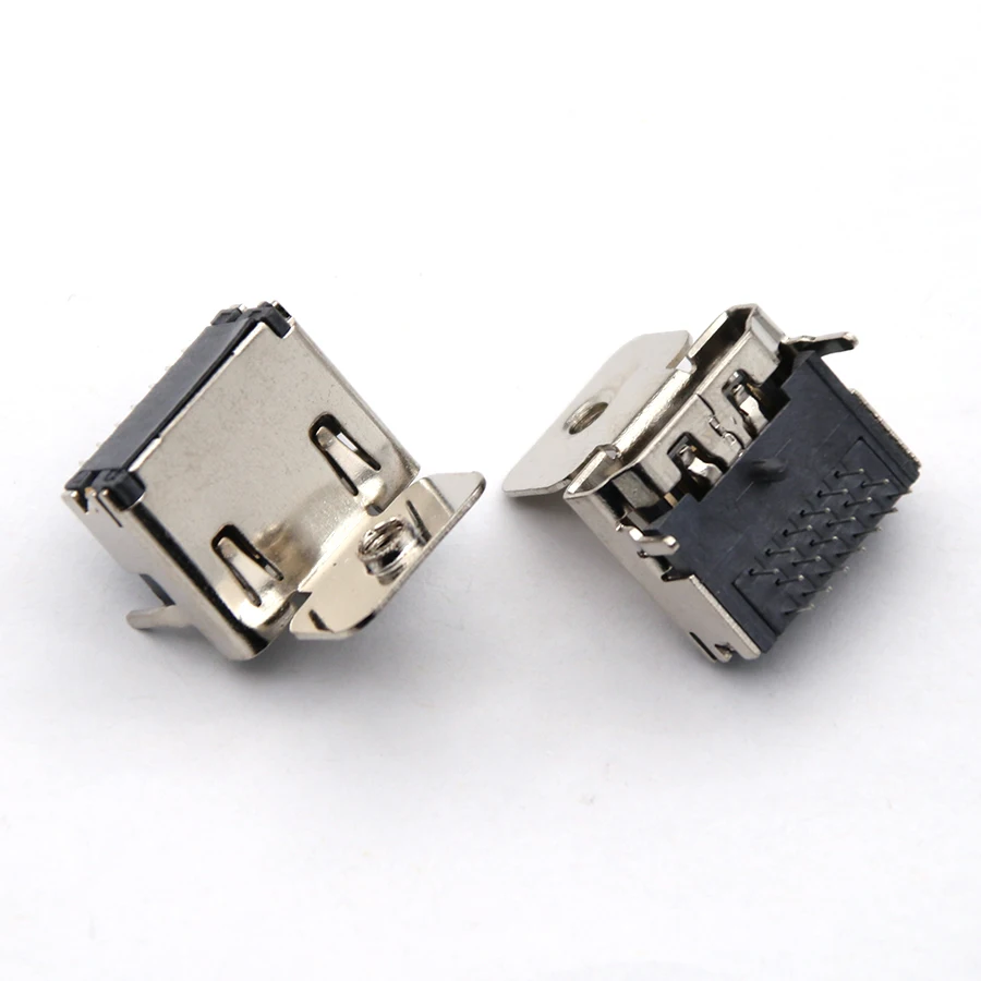 10PCS 19 pin HDMI Jack Female Socket interface connector 90 degree 3 rows pin (7pin+6pin+6pin) With fixed screw holes