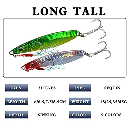 ZYZ 10pcs Jigging Esche da Pesca Long-Throw Casting Trolling Esca per Pesca Metal Jig Bass Esca da Pesca bionica Esche da Pesca d'Acqua Dolce di Acqua salata (Color: Red Head, Size: 75mm 35g)