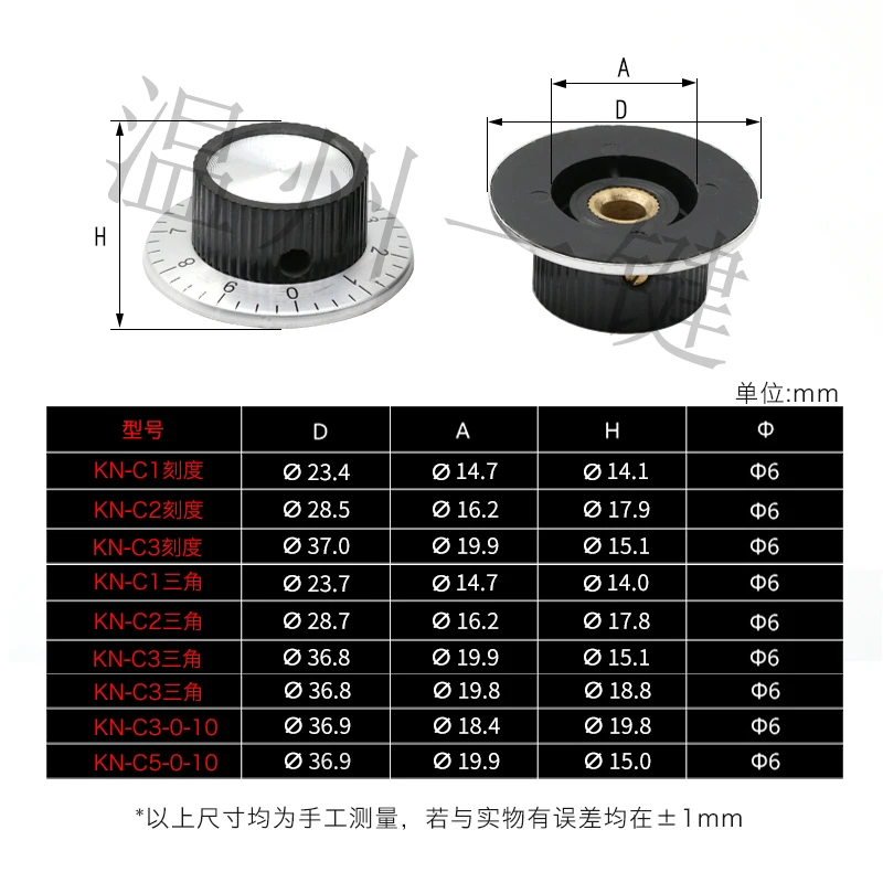 10pcs KN-C2C5 scale potentiometer Encoder rotary switch volume adjustment knob hat metal face with scale