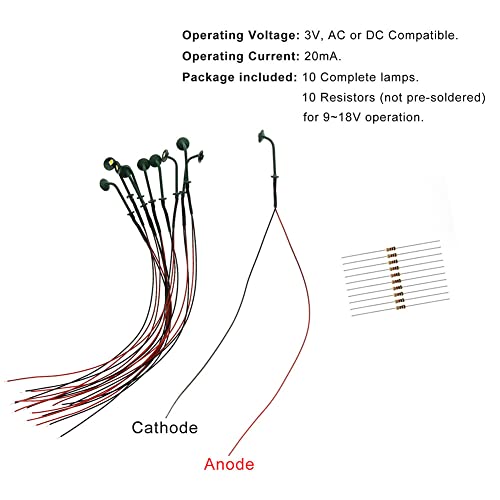 NC 10Pcs Led Lampade di via per la creazione di modelli ferroviari, 1:187 Ho Scala Modello Ferroviario Treno Lampioni, Lampada a sospensione/esterna/parete Luce del collo dell'oca