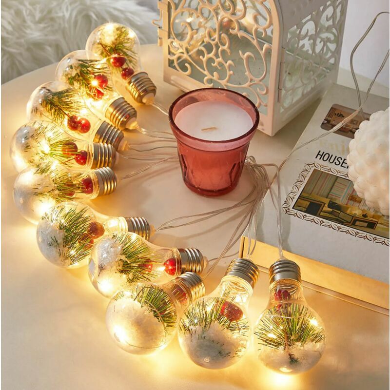 Stringa luminosa a LED a luce bianca calda, alimentata da 3 batterie AA (non incluse), con decorazione ad ago di pino all'interno della lampadina. Una buona scelta per creare un'atmosfera calda e romantica e godersi l'happy hour. * La stringa di luci è lunga circa 4 m, con 10 lampadine a LED, realizzate in plastica di alta qualità che non si rompono e non si surriscaldano.< br/>* Impermeabile IP44, adatto per uso interno ed esterno (Nota: la custodia della batteria non è impermeabile, evitare schizzi di pioggia) * Grandi luci a stringa per interni e decorazioni natalizie come camera da letto, parete, divano, sedia, tavolo da pranzo, arazzo, camera da letto, tenda, albero di Natale, ghirlanda o altre decorazioni natalizie. * Perfetto per decorare decorazioni interne come stanze, pareti, divani, sedie, tavoli da pranzo, arazzi, camere da letto, tende, alberi di Natale, ghirlande o altre decorazioni natalizie. Specifiche: Luce Colore: bianco caldo Batteria: 3 batterie AA (non incluse)