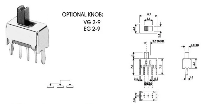 10Pcs 3 Pin PCB 2 Position 1P2T SPDT Miniature Slide Switch Side Knob SS12D07VG4 Handle high 4mm