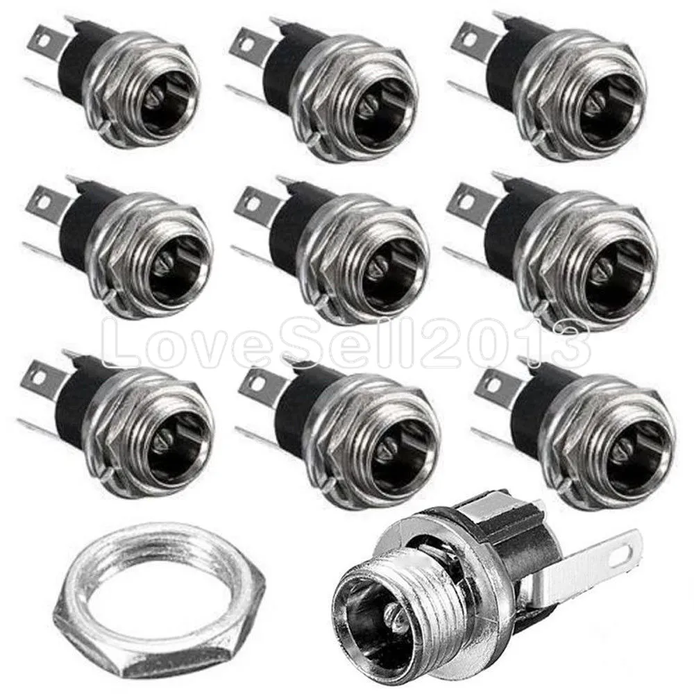 10Pcs 5.5 x 2.1mm DC Power Supply Jack Socket Female Panel Mount 3-Pin Electrical Socket Connector