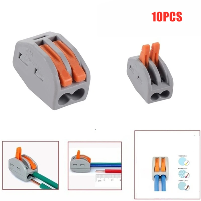 10PCS Quick Reusable Spring Lever Terminal Block Electric 2P Cable Connector Wire 2Way home Accessories