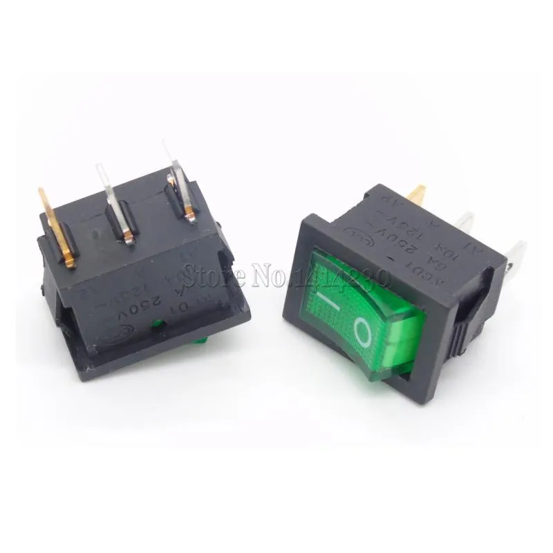10PCS Ship Type Switch 15*21mm 3PIN ON/OFF Boat Rocker Switch 6A/250V 10A/125V 15X21 With Green Light