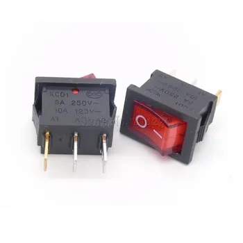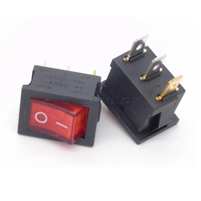 10PCS Ship Type Switch 15*21mm 3PIN ON/OFF Rocker Switch 6A/250V 10A/125V 15X21 With Red Light