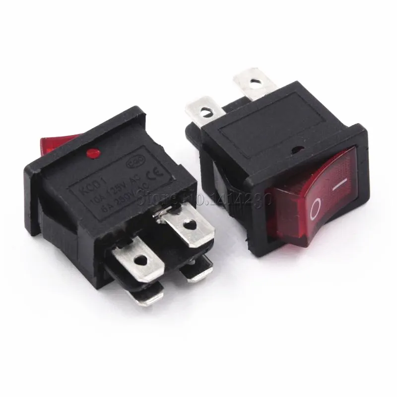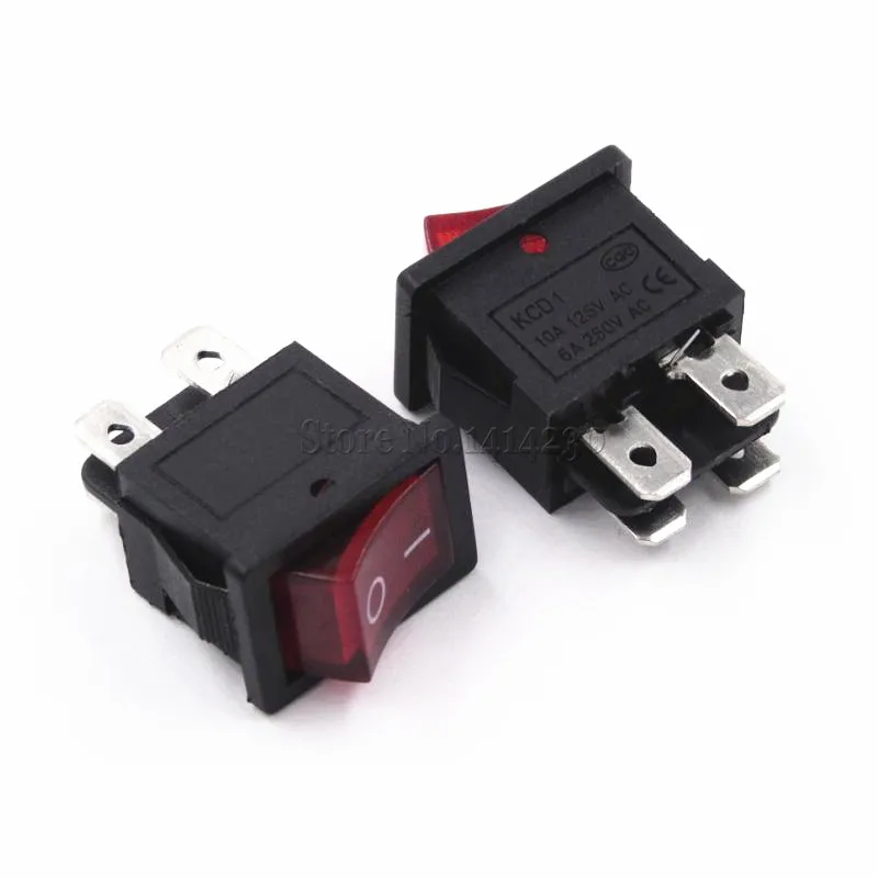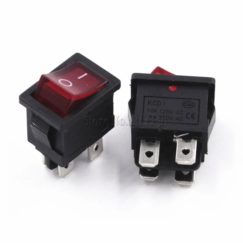10PCS Ship Type Switch Red Light 15*21mm 4PIN ON OFF Boat Rocker Switch 6A/250V 10A/125V LCD TV Power Switch 4 Contact Points