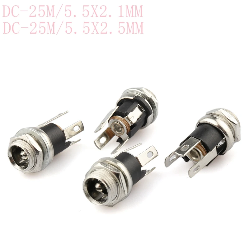 10pcs 5.5x2.1mm 5.5x2.5mm DC Socket With Nut DC Power Jack Socket Female Panel Mount Connector DC025 DC-025