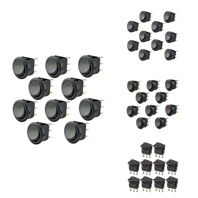10Pcs SPST Round Dot Rocker Switch 20A 12V DC for Car or Boat with LED