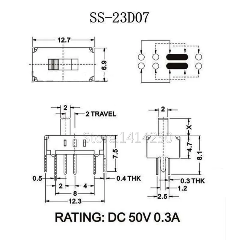 10PCS SS23D07 8 PINS 3 Position 2P3T Toggle Switch Double Vertical Sliding Switch Handle Length 4MM Bracket