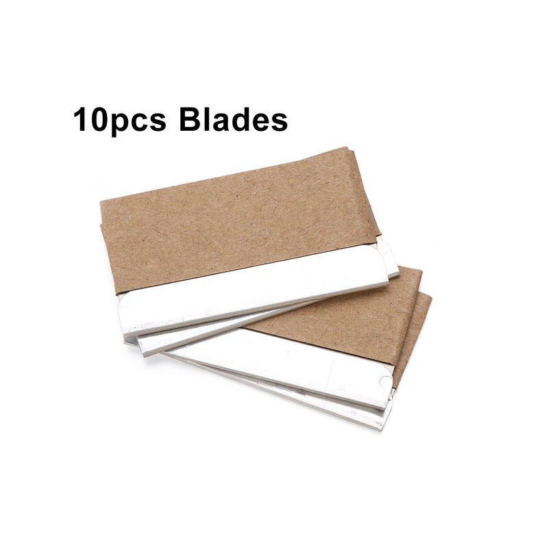 Color: Silver Blade Material: Steel Carbon steel blade size: 4cm Lightweight and durable construction Easy blade access for quick and simple blade changes Package included:10pcs Blades OR 1pc Razor Scraper