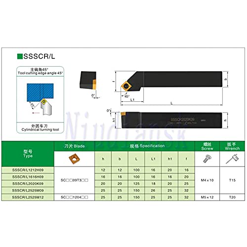 10pcs Set di strumenti Tornio CNC SCGT SCMT09T3 SSSCR1212 SSSCR1616H09 SSSCR2020K09 SSSCR2020K09 SSSCR2525M09 Supporto per utensili esterno SSSCL ( Angle: No Insert, Shank Diameter: SSSCR1212H09 )