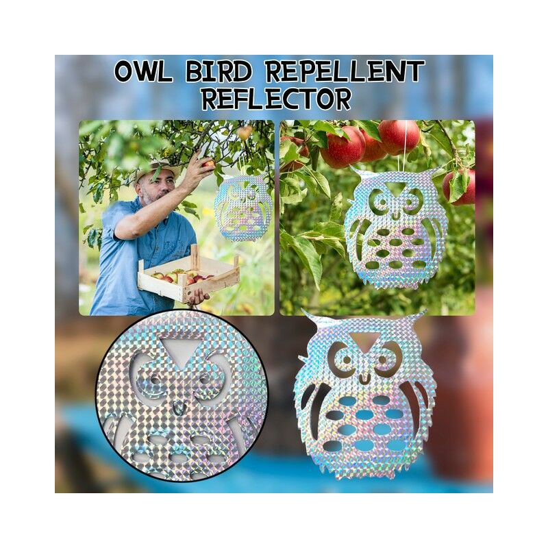 10PCS Appiccicoso Gufo Tipo Lampeggiante Uccello Repellente Pezzo Frutteto Balcone Caratteristica: Uccello repellenti hanno più angoli di rifrazione in combinazione con vento movimenti per evitare che gli uccelli da adattare per l'ambiente. Ad alta efficienza: La difesa, in forma di un gufo, crea le ultime combinazione uccello scare immagine interferenza (ologramma) che con 3D effetto, la libera circolazione, discouraging gli occhi e campane acustico Molto facile da usare, facile da appendere in su alberi da frutto, casa, recinzioni, terrazze, A distanza gli uccelli. Il 3D lamina doppia faccia gufo per spaventare gli uccelli, protegge il laghetto da giardino, di frutta, verdure e semi. Si può anche attaccare questi uccello repellente pezzi saldamente sulle finestre, O ovunque si desidera installare loro. Formato: 19.5x15.5cm Cornici E Articoli Da Esposizione Incluso: 10 xUccello Repellente Pezzo