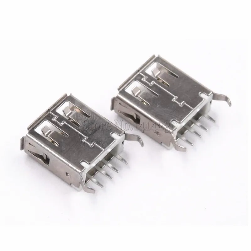 10Pcs USB Type A Female Socket 180 Degrees Vertical 4pins USB Interface Sides Of the Curved Needle
