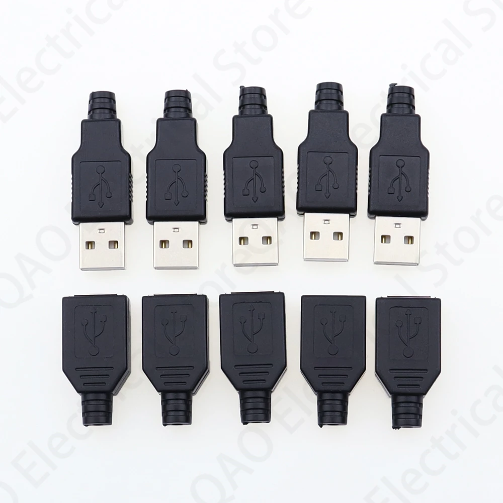 10pcs Type A Male Female USB 4 Pin Plug Socket Connector With Black Plastic Cover Type-A DIY Kits